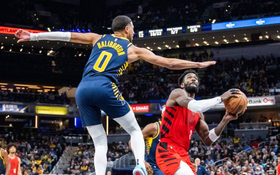 籃球直播吧11月28日訊 NBA常規(guī)賽,客場(chǎng)作戰(zhàn)的波特蘭開(kāi)拓者以114-110擊敗印第安納步行者。艾頓22分13籃板1助攻,哈利伯頓33分2籃板9助攻。